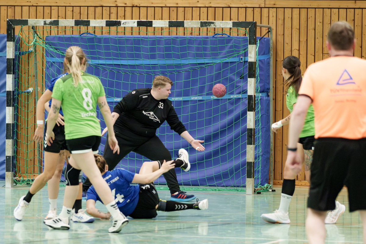 Einen Punkt Vorsprung hatte der TuS Daun vor dem Spieltag, lag damit vor dem Schlusslicht Bad Ems. Mit einem Heimspielerfolg hätte das Team von Trainer Can Steuernagel den Klassenerhalt perfekt machen können, doch die Trierer Miezen wurden ihrer Favoritenrolle in Daun gerecht und setzen sich am Ende ungefährdet durch! Die Anfangsphase gehörte den Triererinnen, die über 1:5 (8.) Dauns Trainer Can Steuernagel zur ersten Auszeit zwangen, sich dann aber weiter auf 3:9 (11.) absetzen. Dann riss der Faden im Gästespiel, Daun verkürzte auf 5:9 (12.) und jetzt war es an Gästetrainer Ralph Vogel die Auszeit zu nehmen. Lisa Kaiser gelang zwar der Anschlusstreffer zum 6:9, doch die Miezen verteidigten weiter ihre drei bis vier Tore Führung über 7:11 (19.), doch Daun ließ sich nicht abschütteln. Die Mannschaft blieb über 9:12 (23.) an den Gästen dran, die sich bis zur Pause aber dann doch klar mit fünf Tore auf 11:16 absetzten. Besser kamen die Daunerinnen aus der Pause 13:17 (33.), doch näher kam das Steuernagel Team nicht heran und so kam die Auszeit von Daun beim 14:19 (39.), die aber eher den Triererinnen in die Karten spielte. Mit zwei Treffern in Folge war das Spiel beim 14:21 (41.) „durch“ und es konnte nur noch um das Ergebnis gehen. Das Vogel Team zog auf und davon und war beim 15:24 (47.) eindeutig auf der Siegerstraße und verwaltete jetzt die Führung über 19:27 (56.) bis zum letztlich ungefährdeten Auswärtserfolg beim 21:29!